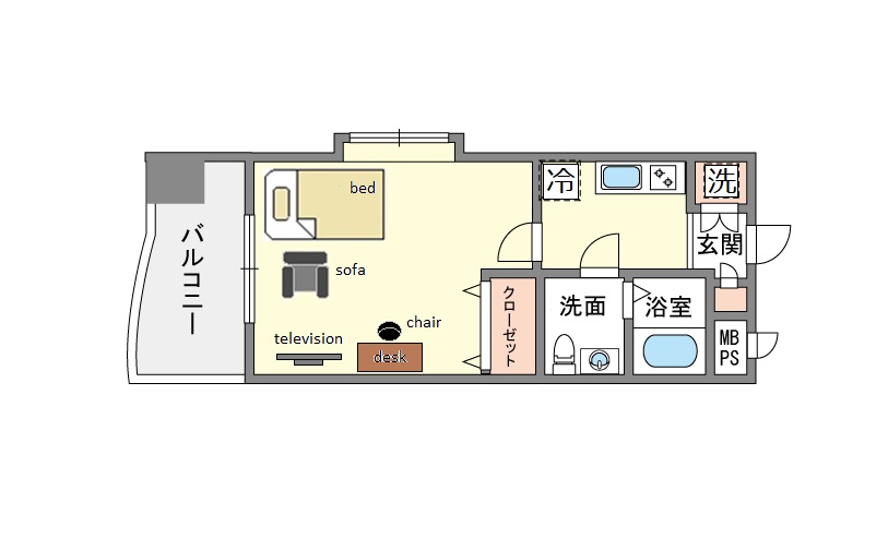| 家具 | イス,カーテン付き,テーブル,デスク、ソファー |