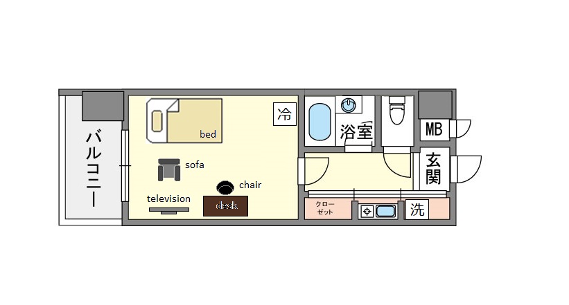 | 電化製品 | 32型テレビ,ドライヤー,冷蔵庫,電子レンジ、洗濯機,掃除機,電気ポット |