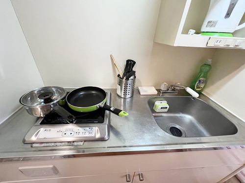 | キッチン類 | まな板, キッチン洗剤, システムキッチン, スポンジ, スポンジ入れ, フライパン, フライ返し, 食器類, 電気コンロ, 片手鍋,包丁 |